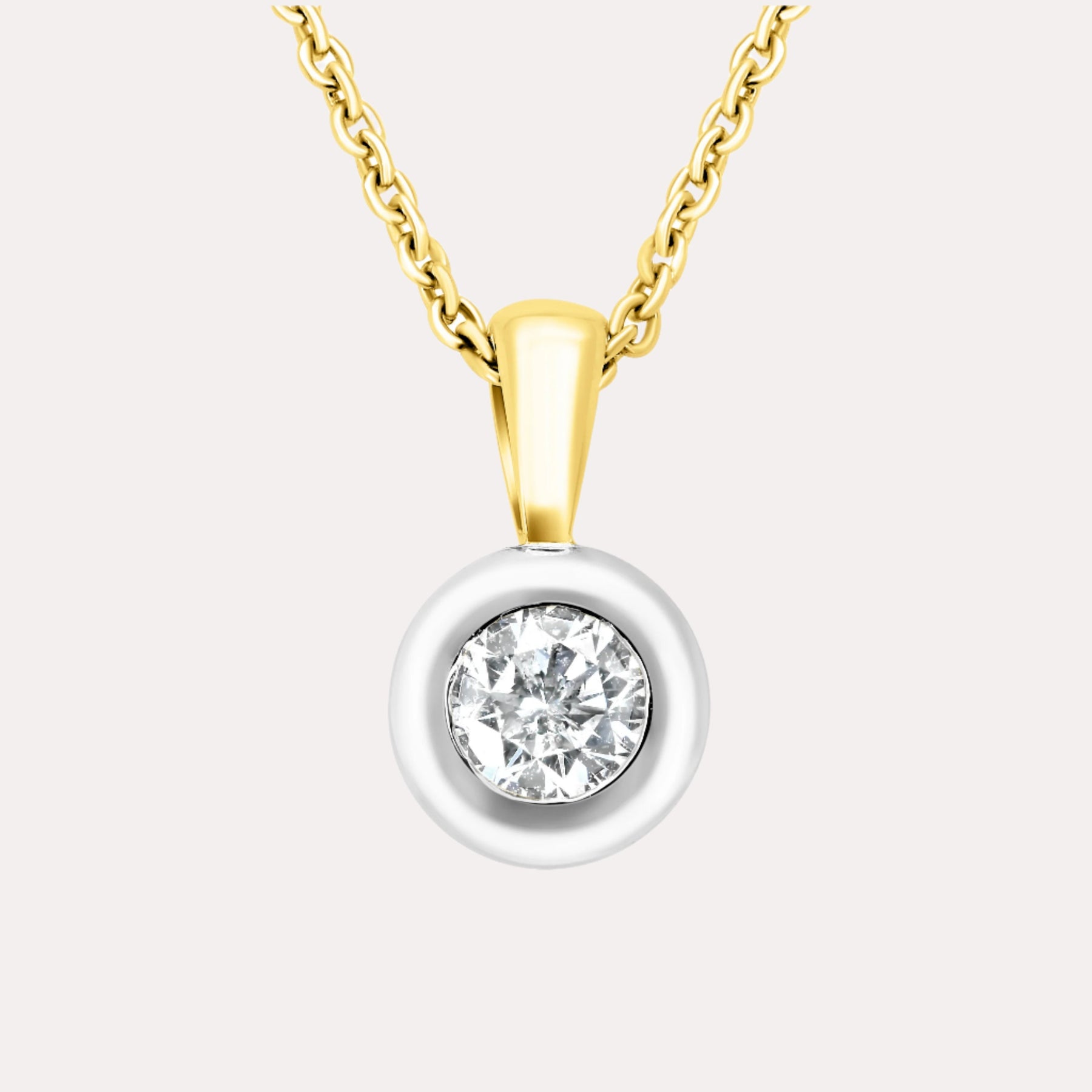 Rimset Round Brilliant Cut Diamond Solitaire Pendant featuring handpicked diamonds of F/G VS quality. Designed to dazzle with refined charm, an ideal as a signature piece or meaningful gift.