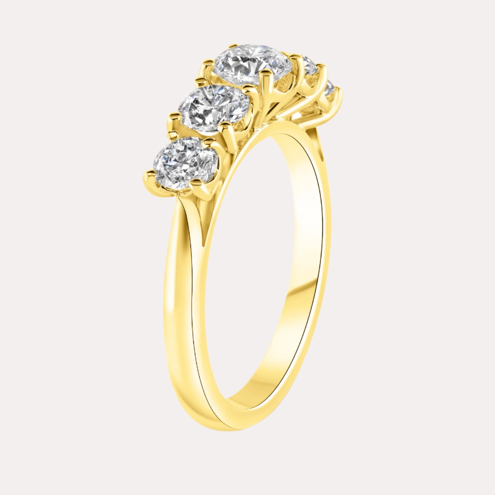 5 Stone Graduated Diamond ring featuring handpicked diamonds of F/G VS quality. Designed to dazzle with refined charm, an ideal as a signature piece or meaningful gift.