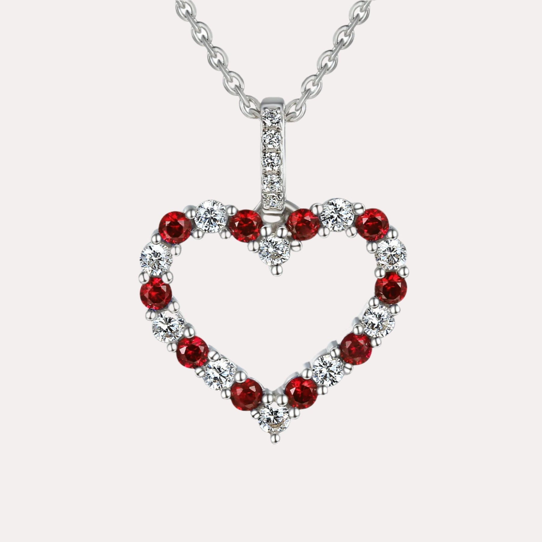 Claw Set Round Brilliant Cut Ruby And Diamond Heart Shape Pendant featuring handpicked 0.26ct natural diamonds of G VS quality. Designed to dazzle with refined charm, an ideal as a signature piece or meaningful gift.