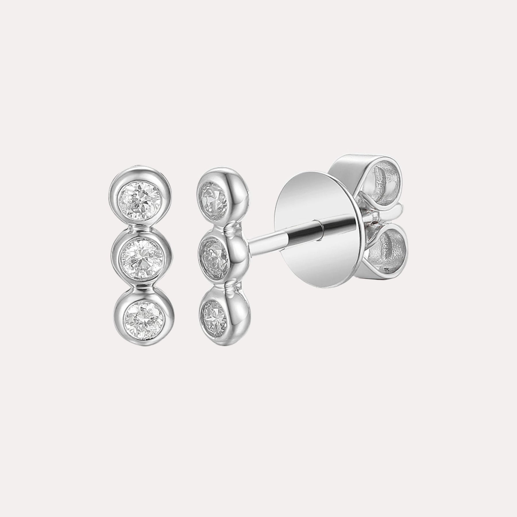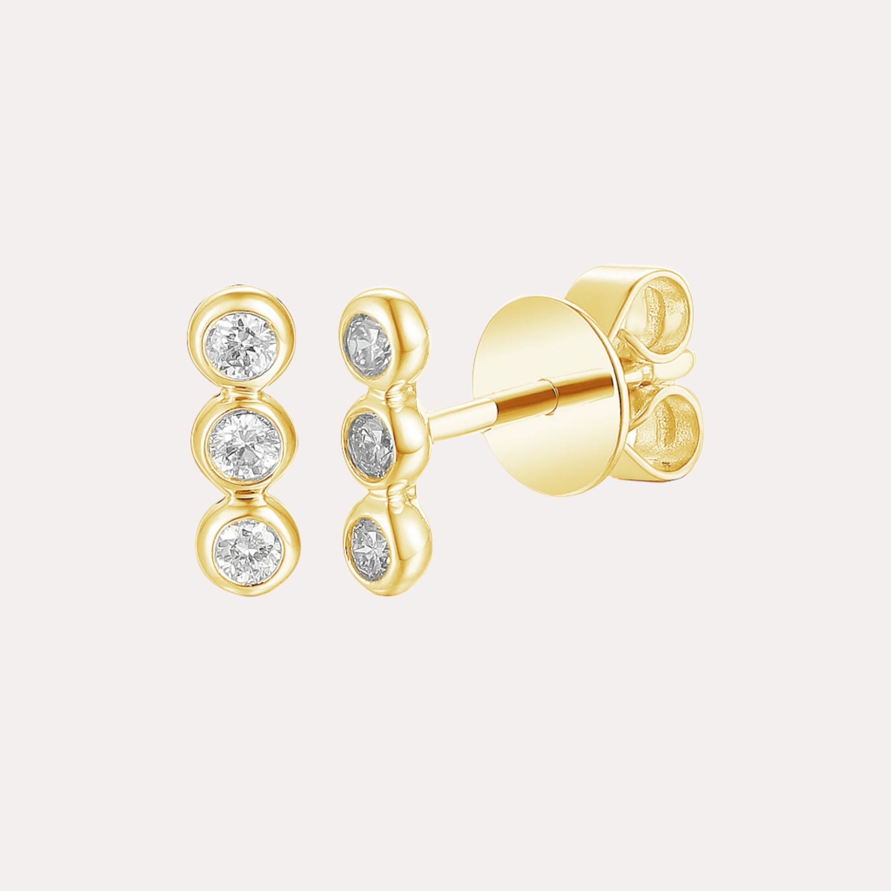 3 Stone Rubover Bubble Diamond Stud Earrings In 18K Gold
