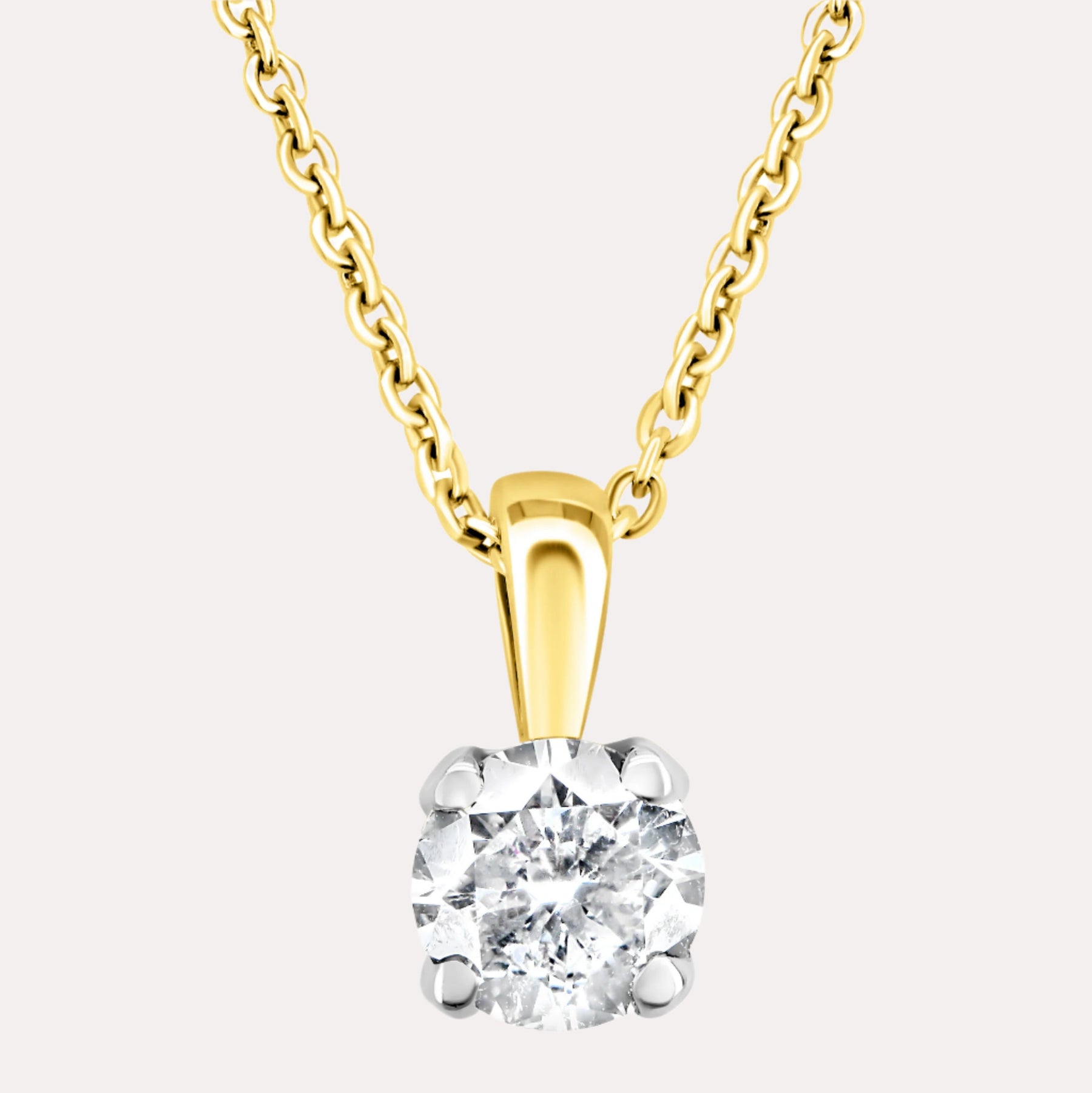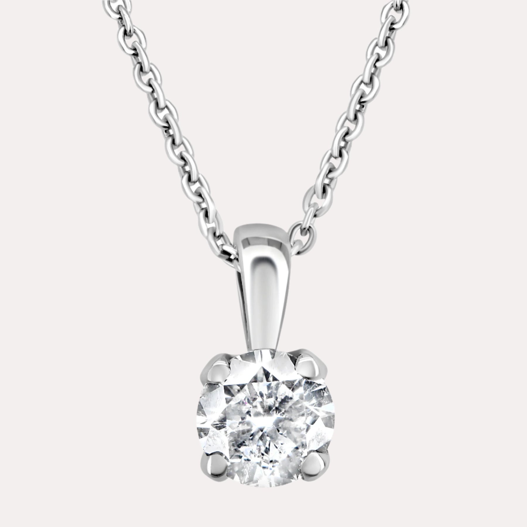4 Claw Tulip Round Diamond Single Stone Pendant featuring handpicked diamonds of F/G VS quality. Designed to dazzle with refined charm, an ideal as a signature piece or meaningful gift.