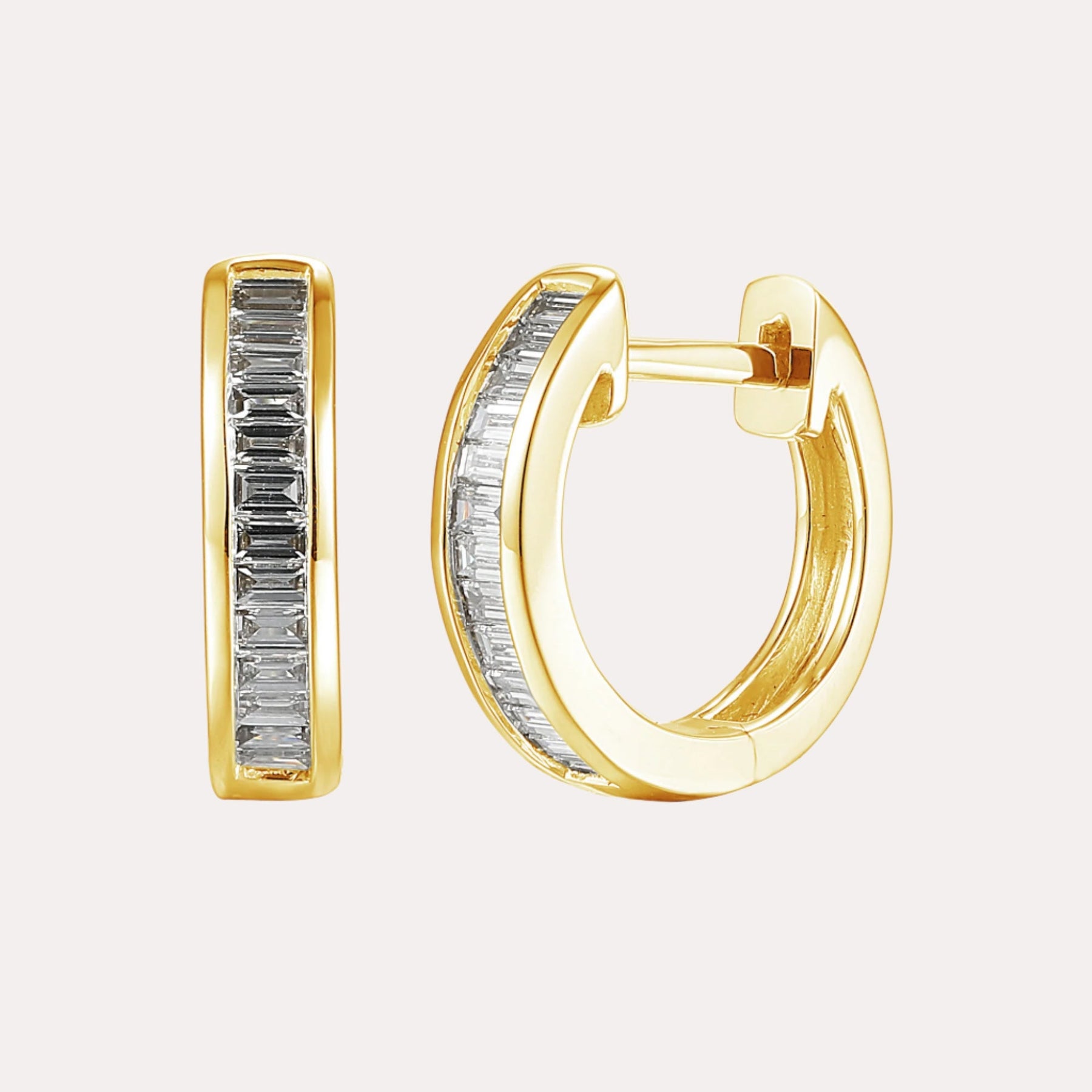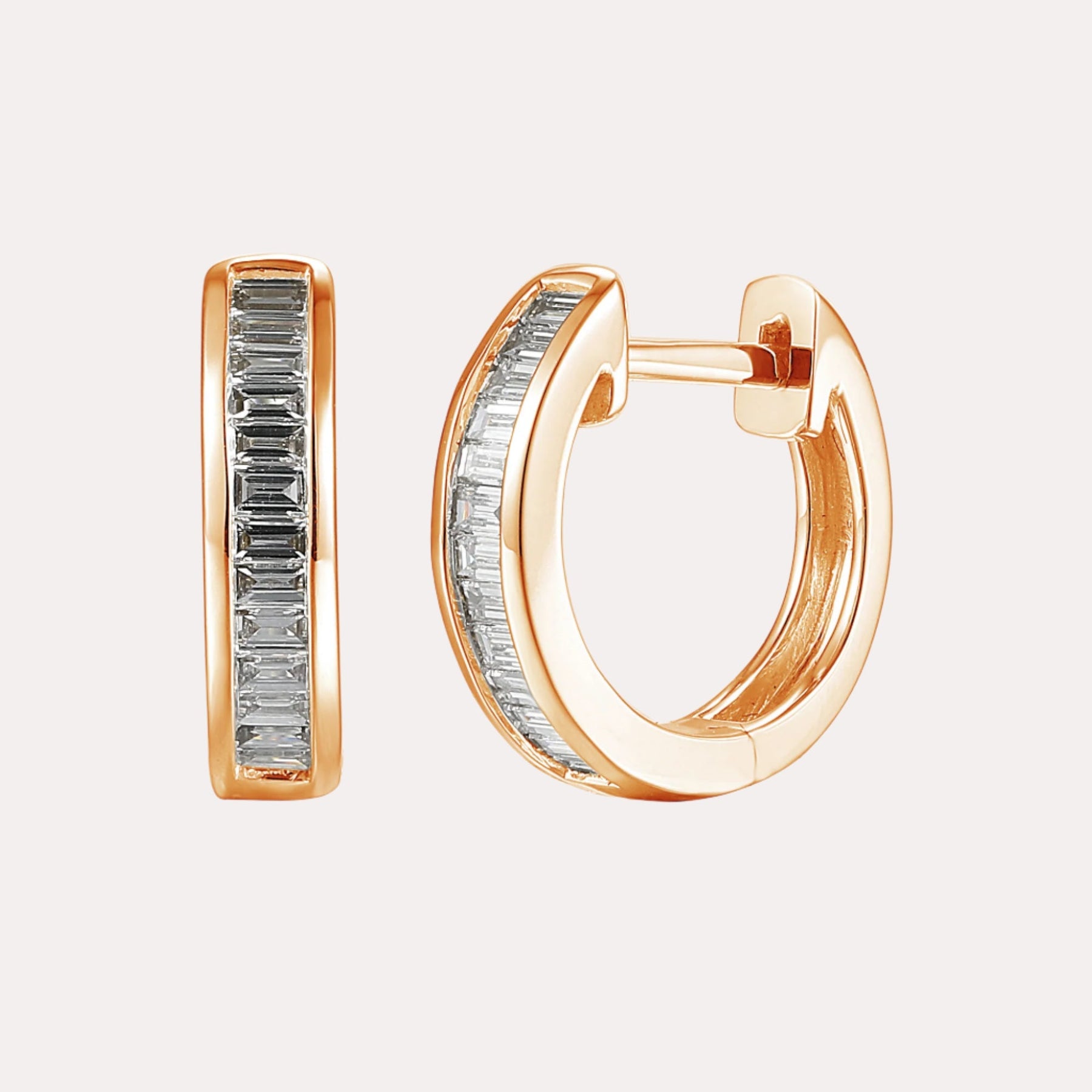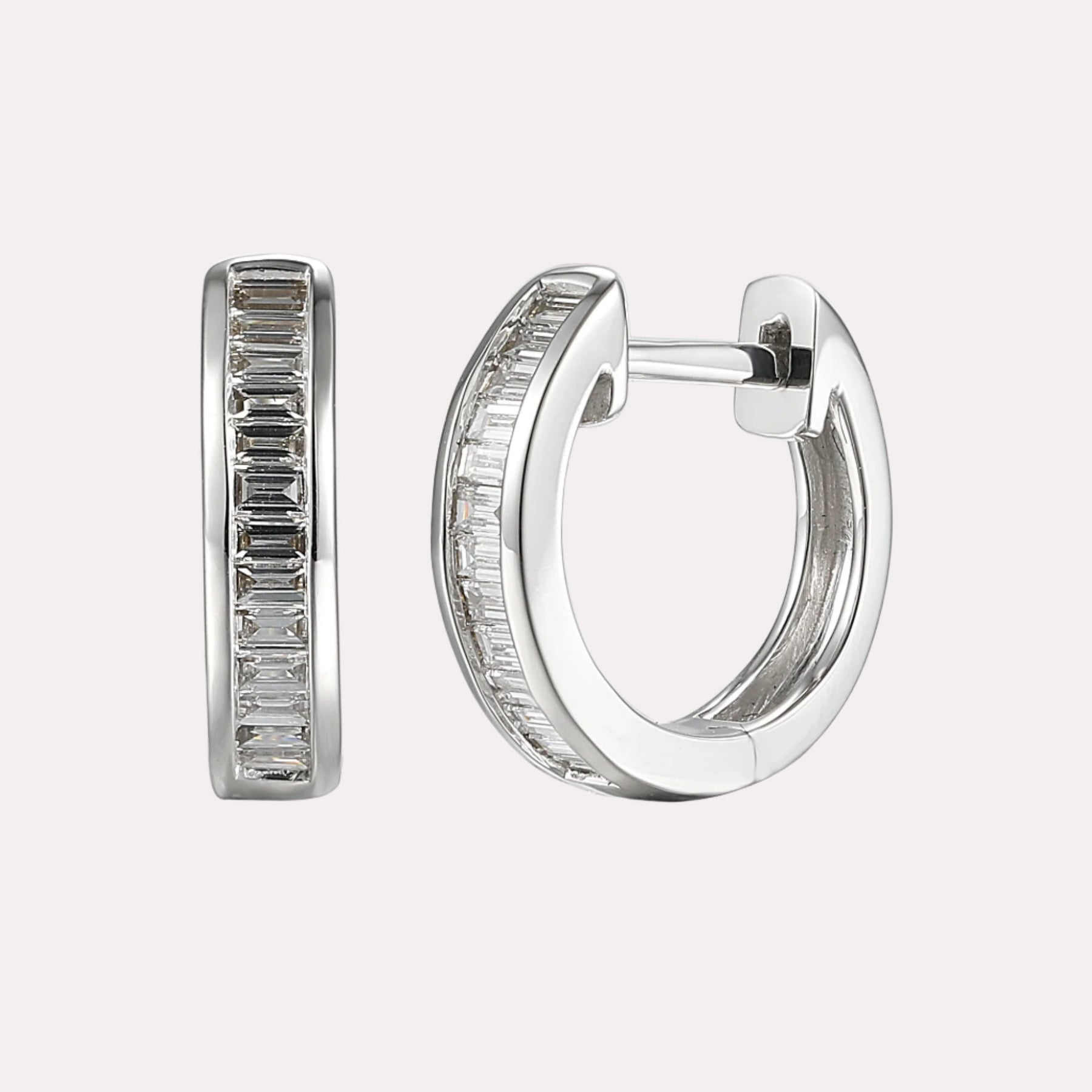 Channel Set Baguette Cut Diamond Hoop Earrings ring featuring handpicked diamonds of G VS quality. Designed to dazzle with refined charm, an ideal as a signature piece or meaningful gift.
