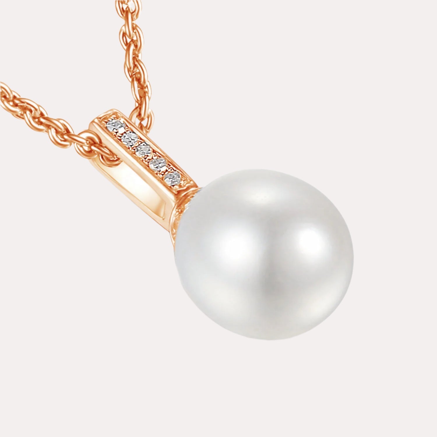 Classic Round Pearl & Diamond Line Drop Pendant Necklace In 18K Gold