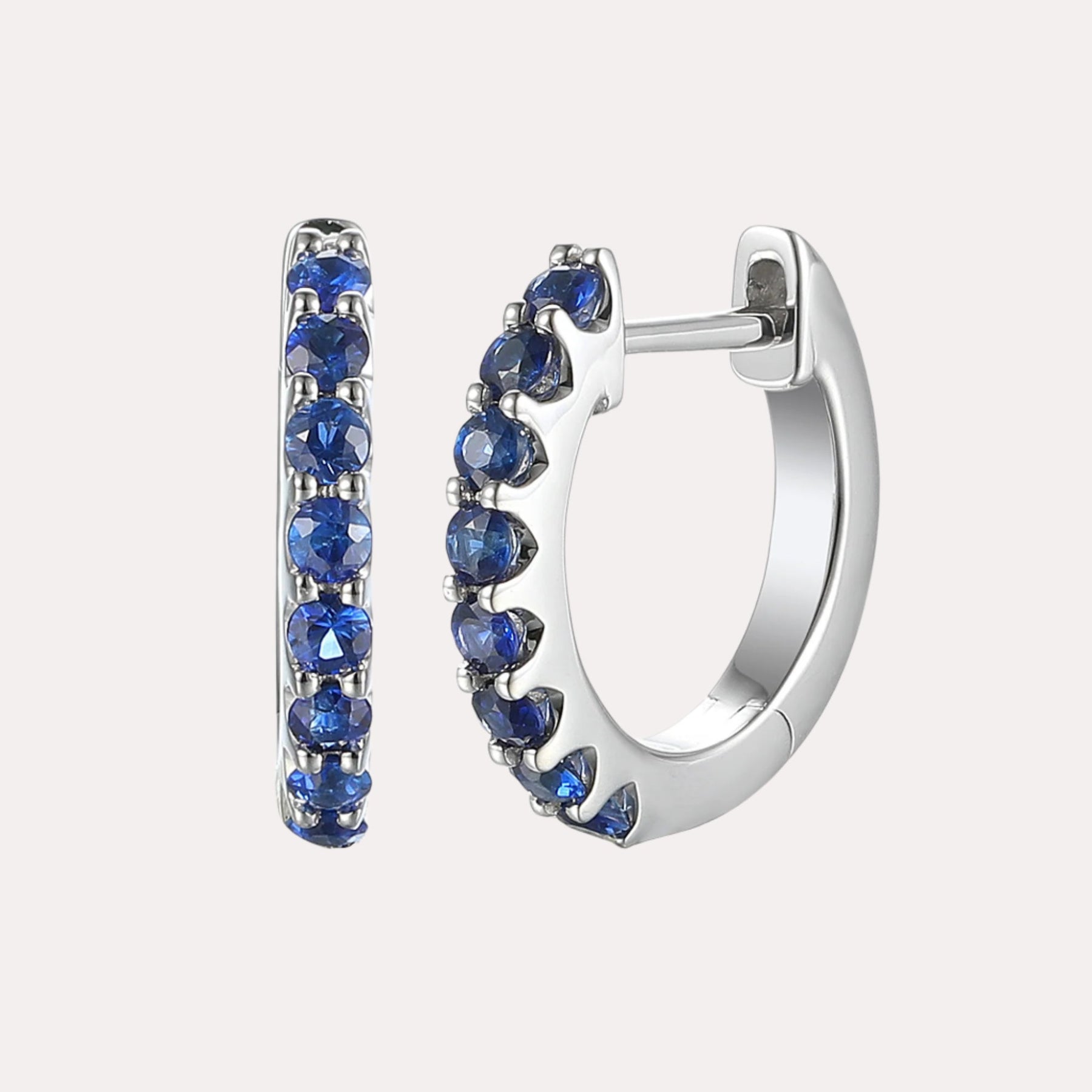 Claw Set Blue Sapphire Huggies In 18K Gold
