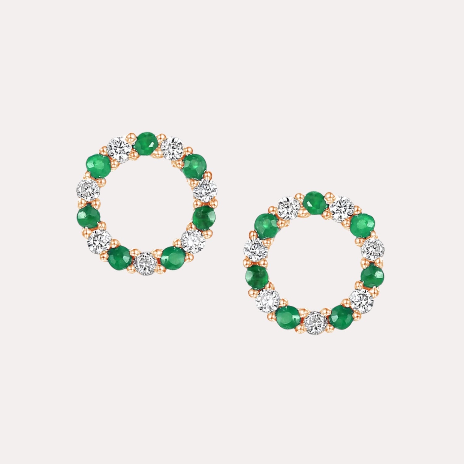 Claw Set Round Brilliant Cut Emerald And Diamond Circle Earrings ring featuring handpicked 0.20ct natural diamonds of G VS quality. Designed to dazzle with refined charm, an ideal as a signature piece or meaningful gift.