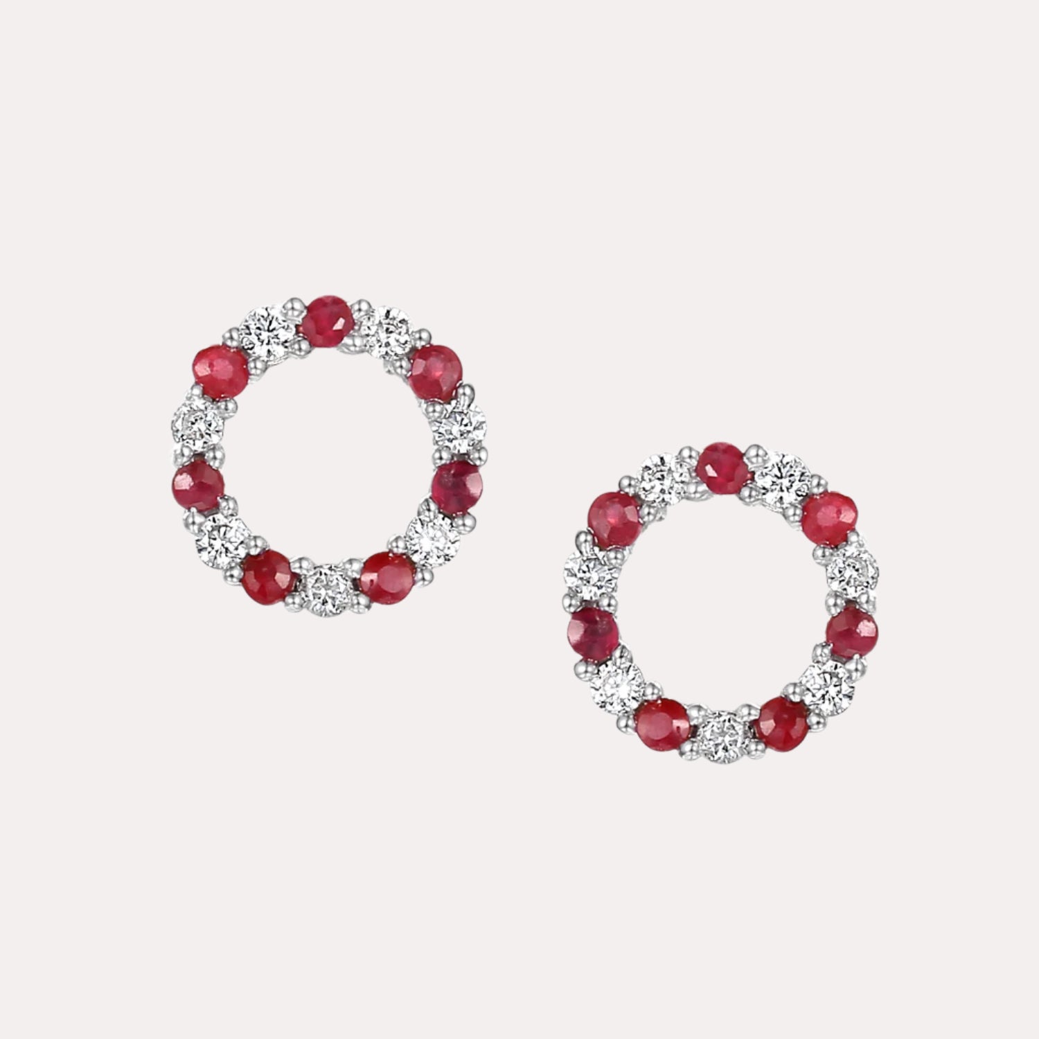 Claw Set Round Brilliant Cut Ruby And Diamond Circle Earrings ring featuring handpicked 0.20ct natural diamonds of G VS quality. Designed to dazzle with refined charm, an ideal as a signature piece or meaningful gift.