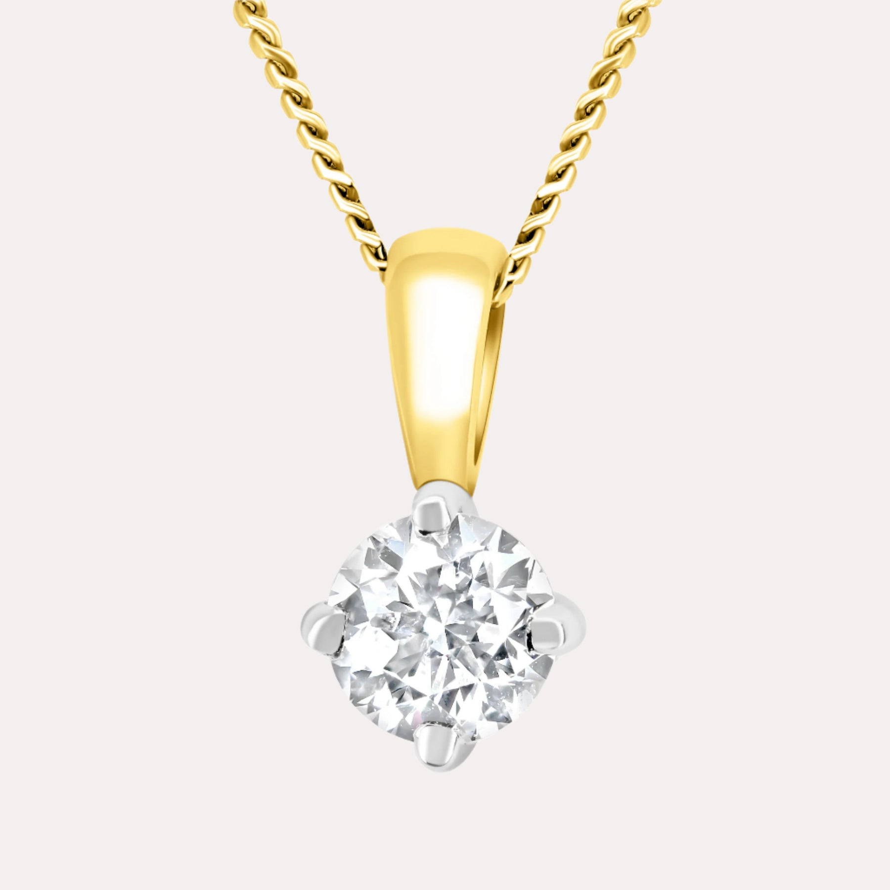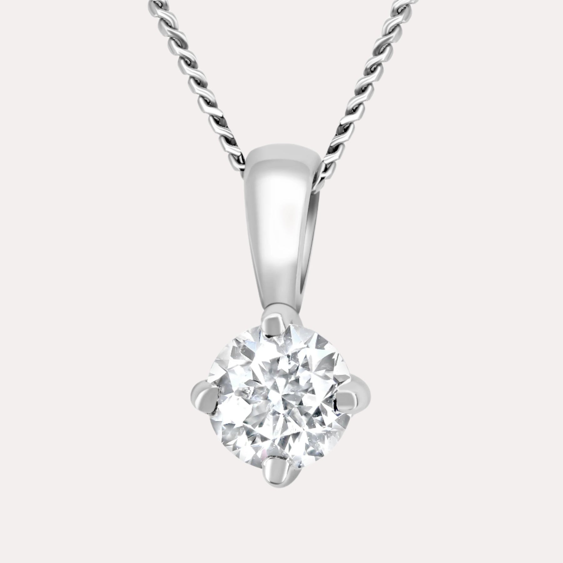 4 Claw Round Brilliant Cut Diamond Solitaire Pendant featuring handpicked diamonds of F/G VS quality. Designed to dazzle with refined charm, an ideal as a signature piece or meaningful gift.