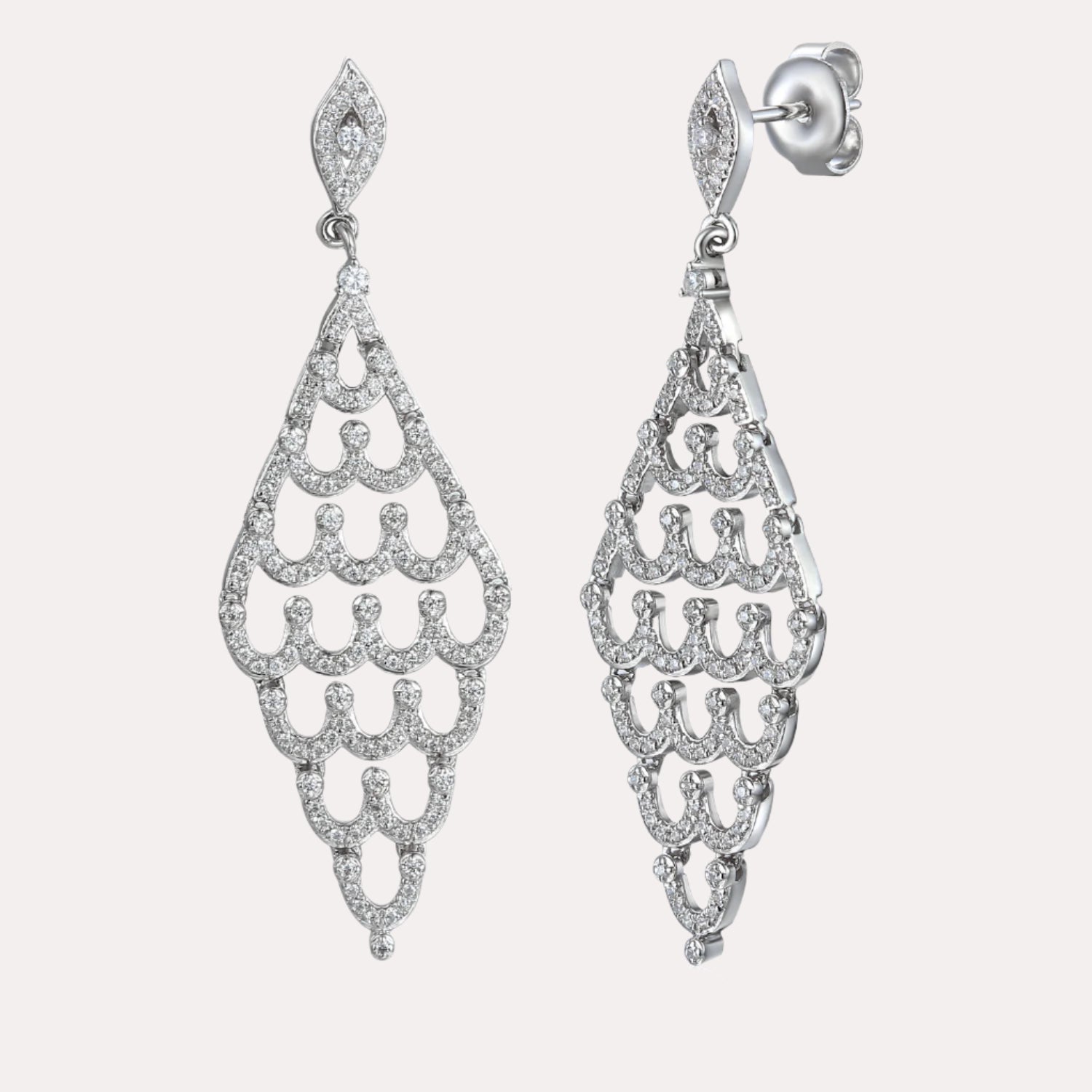 Round Brilliant Cut Diamond Drop Chandelier Earrings ring featuring handpicked 0.75ct diamonds of G VS quality. Designed to dazzle with refined charm, an ideal as a signature piece or meaningful gift.