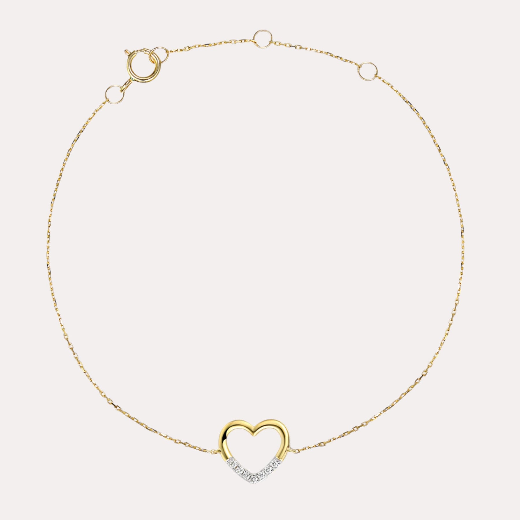 Delicately crafted in 18ct gold, this Bracelet features a heart design adorned with handpicked Round Brilliant Cut Diamonds 0.04ct total of G VS quality. A romantic and refined piece that's perfect for everyday elegance or heartfelt gifting.