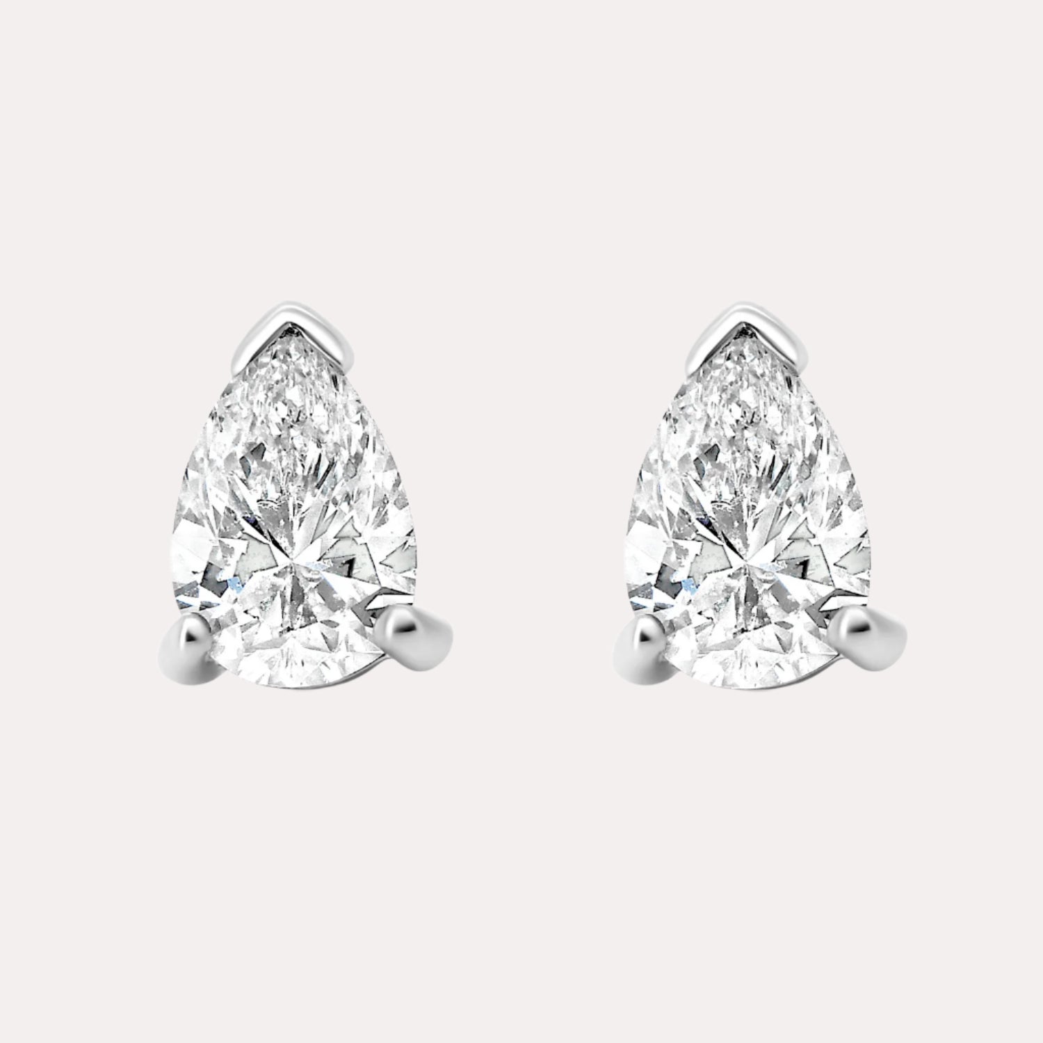 Pear Shape 4 Claw Diamond Stud Earring ring featuring handpicked diamonds of G/H VS/SI quality. Designed to dazzle with refined charm, an ideal as a signature piece or meaningful gift.