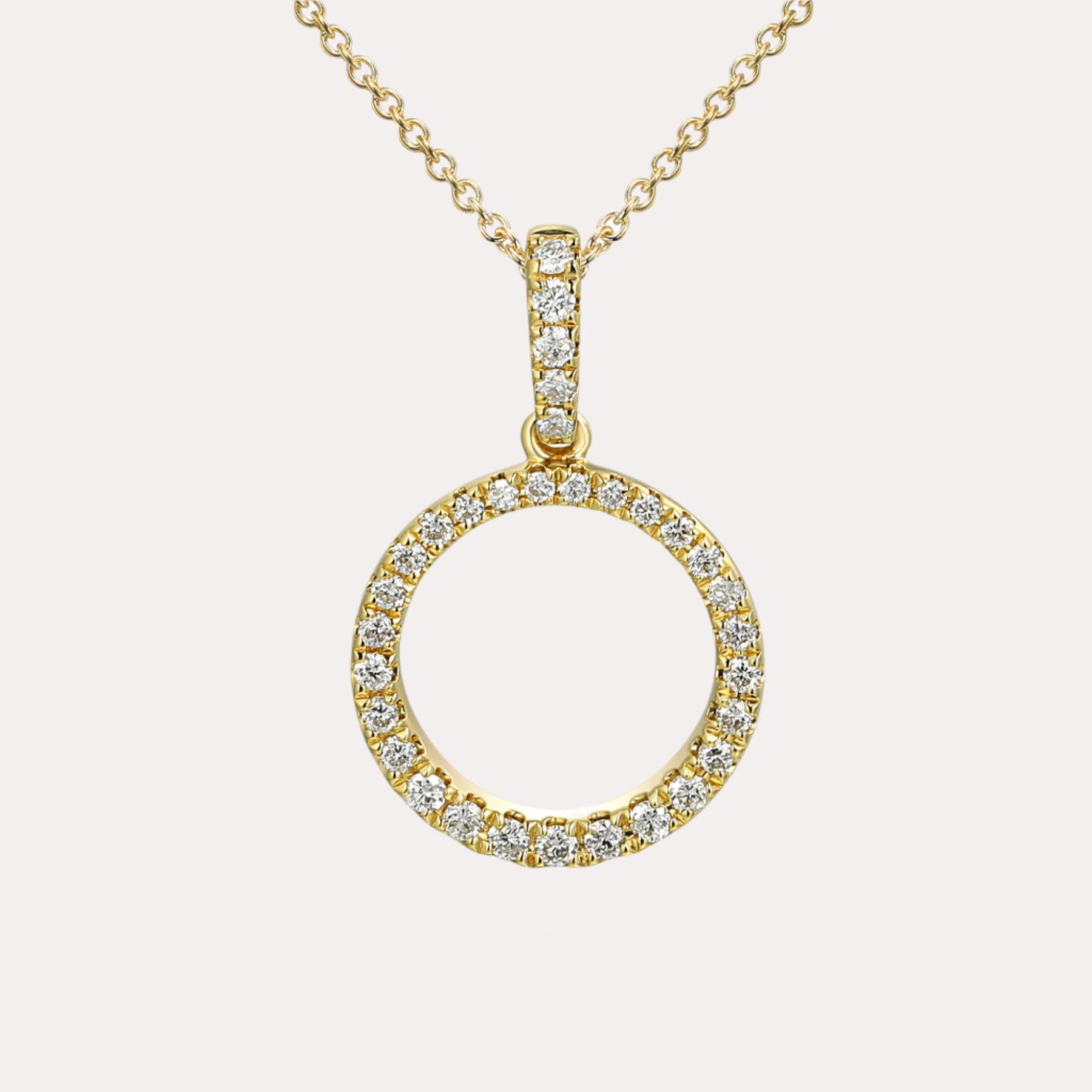 Round Brilliant Cut Micro Set Diamond Circle Pendant featuring handpicked 0.23ct diamonds of G-VS quality. Designed to dazzle with refined charm, an ideal as a signature piece or meaningful gift.