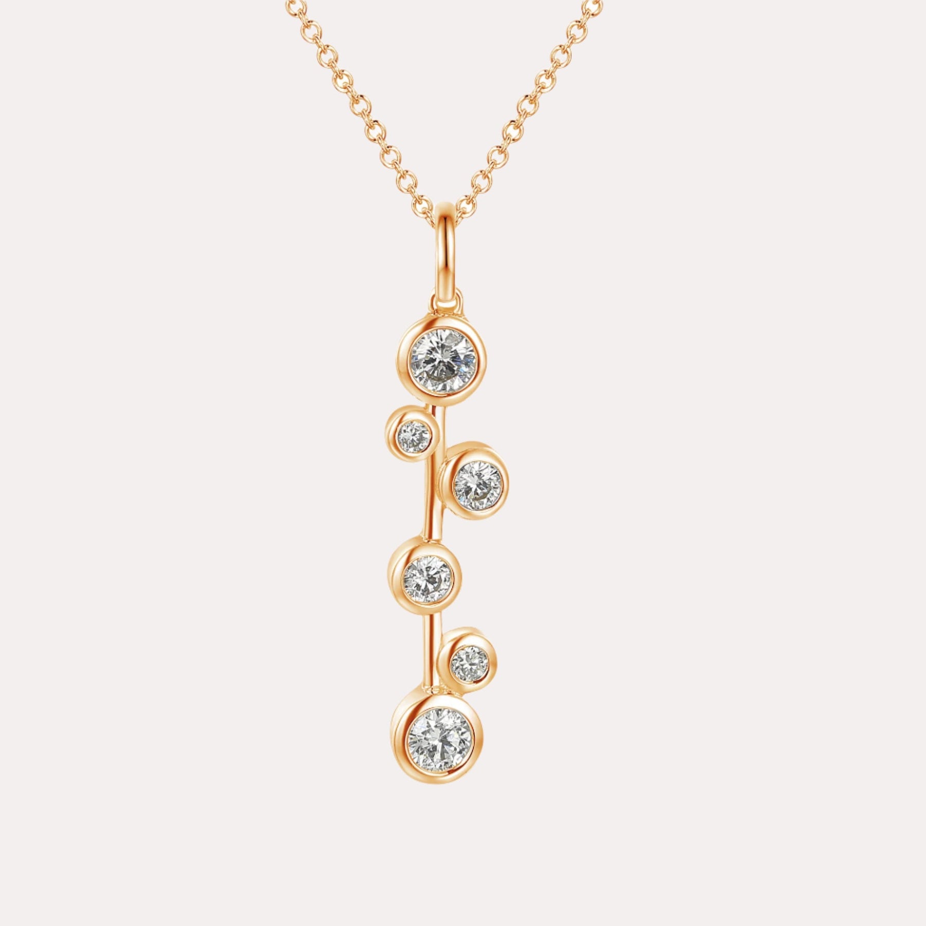 Round Diamond Bubble Stem Drop Pendant Necklace In 18K Gold