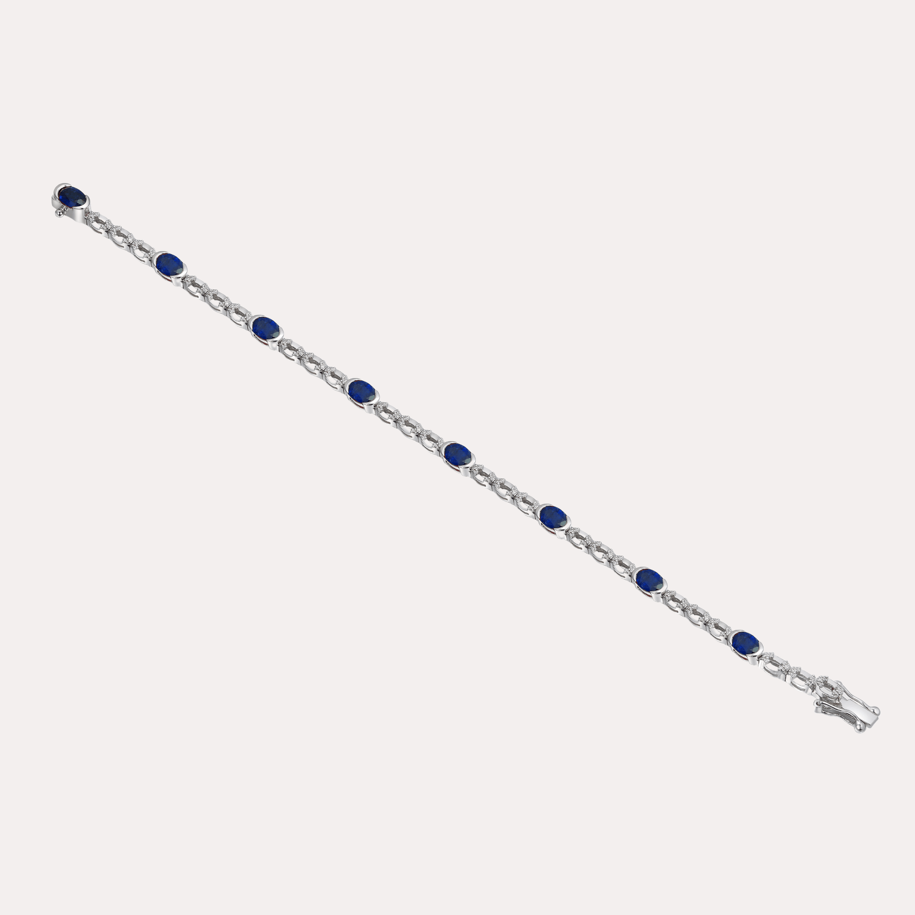 Rubover Set Oval Cut Sapphire Tennis Bracelet featuring handpicked sapphires & natural diamonds of 0.12ct total of G VS quality. Designed to dazzle with refined charm, an ideal as a signature piece or meaningful gift.