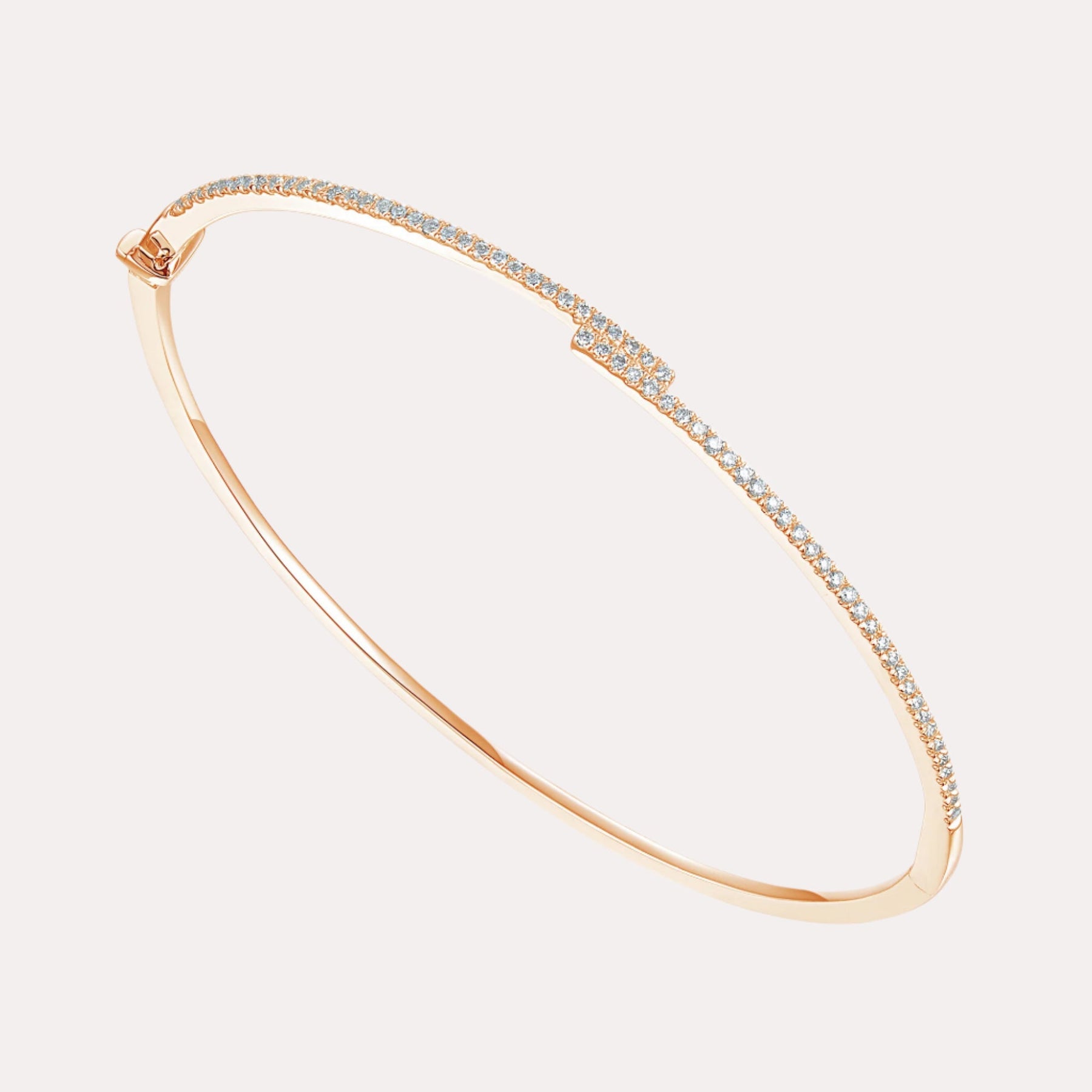 Crafted with clean modern lines, this bangle showcases 0.42ct total of handpicked G VS quality Round Brilliant Cut Diamonds, each securely set in a smooth Rubover setting. A bold yet timeless piece designed for stacking or making a statement all on its own.
