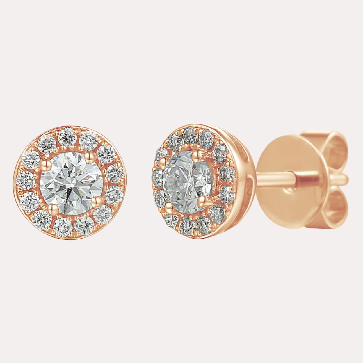 Round Brilliant Diamond Halo Stud Earrings In 18K Gold