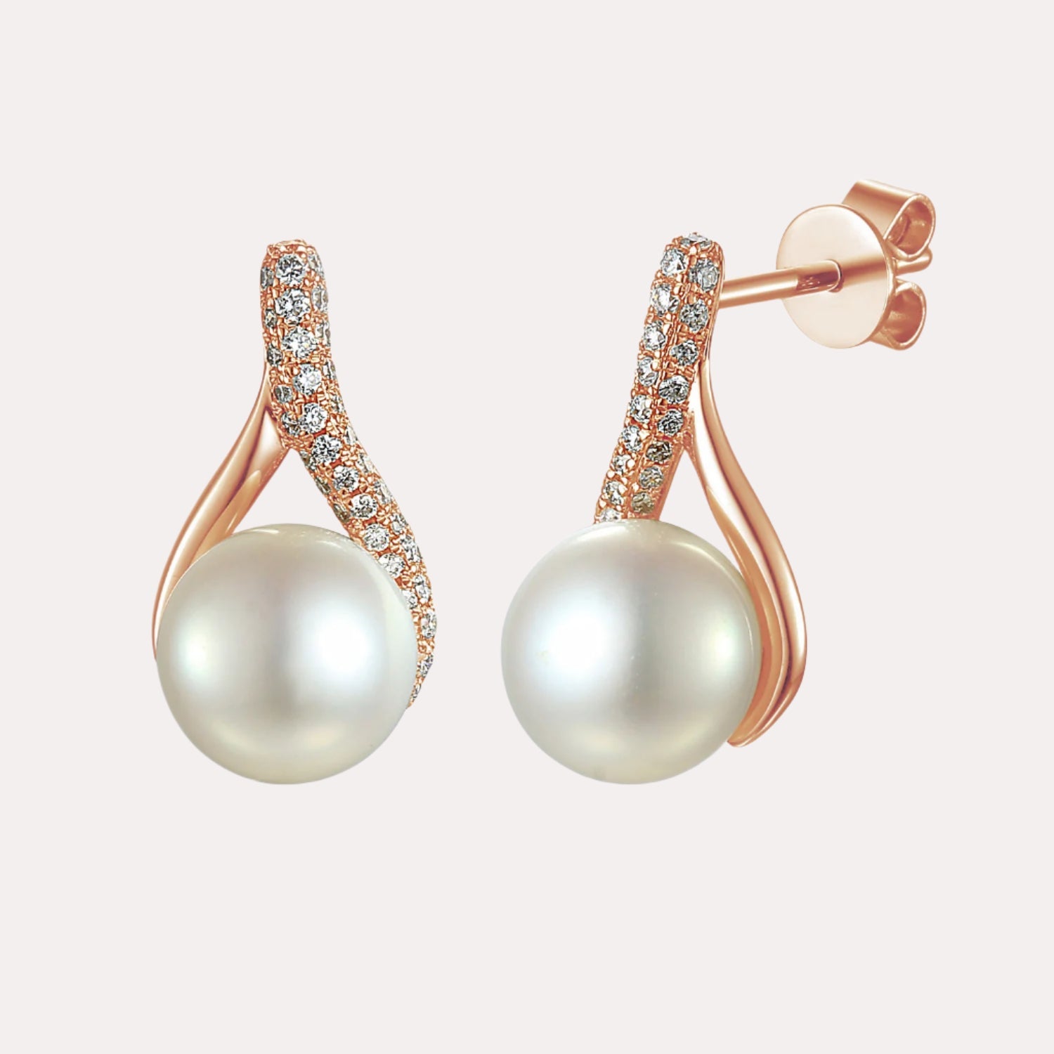 Round Pearl Pavé Tulip Drop Studs In 18K Gold
