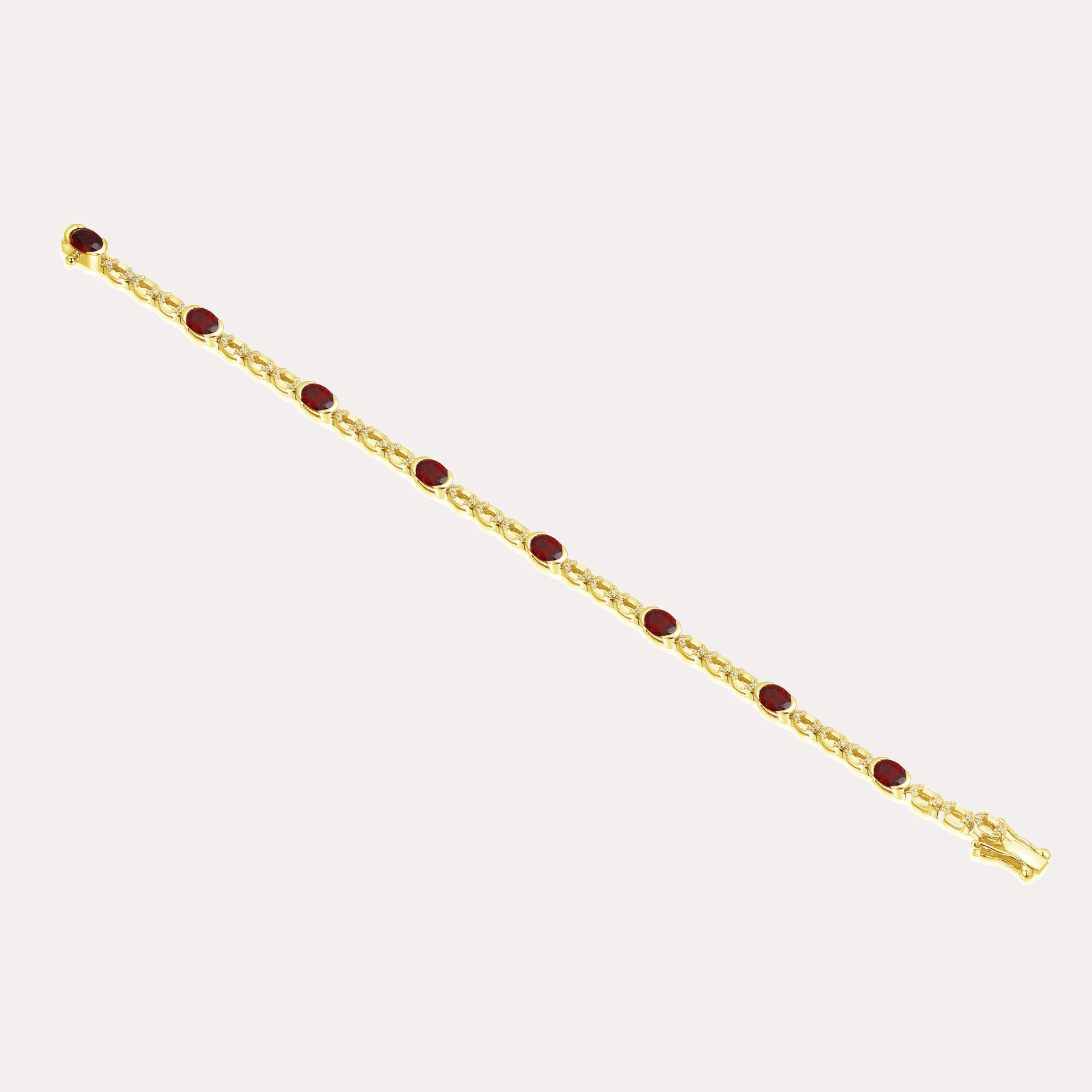Rubover Set Oval Cut Ruby Tennis Bracelet featuring handpicked rubies & natural diamonds of 0.12ct total of G VS quality. Designed to dazzle with refined charm, an ideal as a signature piece or meaningful gift.