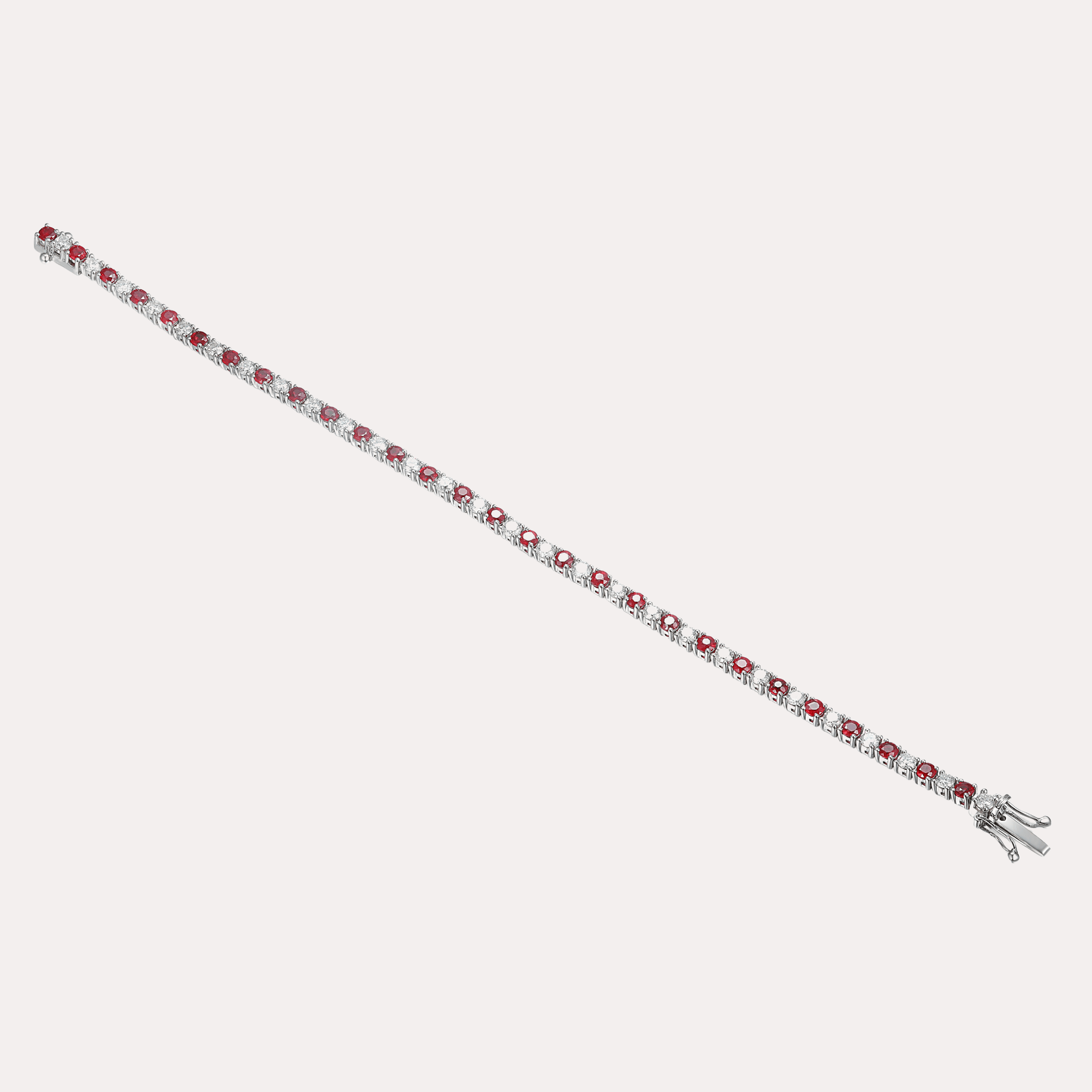 Round Brilliant Cut Ruby and Diamond Claw Set Tennis Bracelet featuring handpicked natural diamonds of 1.75ct total Designed to dazzle with refined charm, an ideal as a signature piece or meaningful gift.